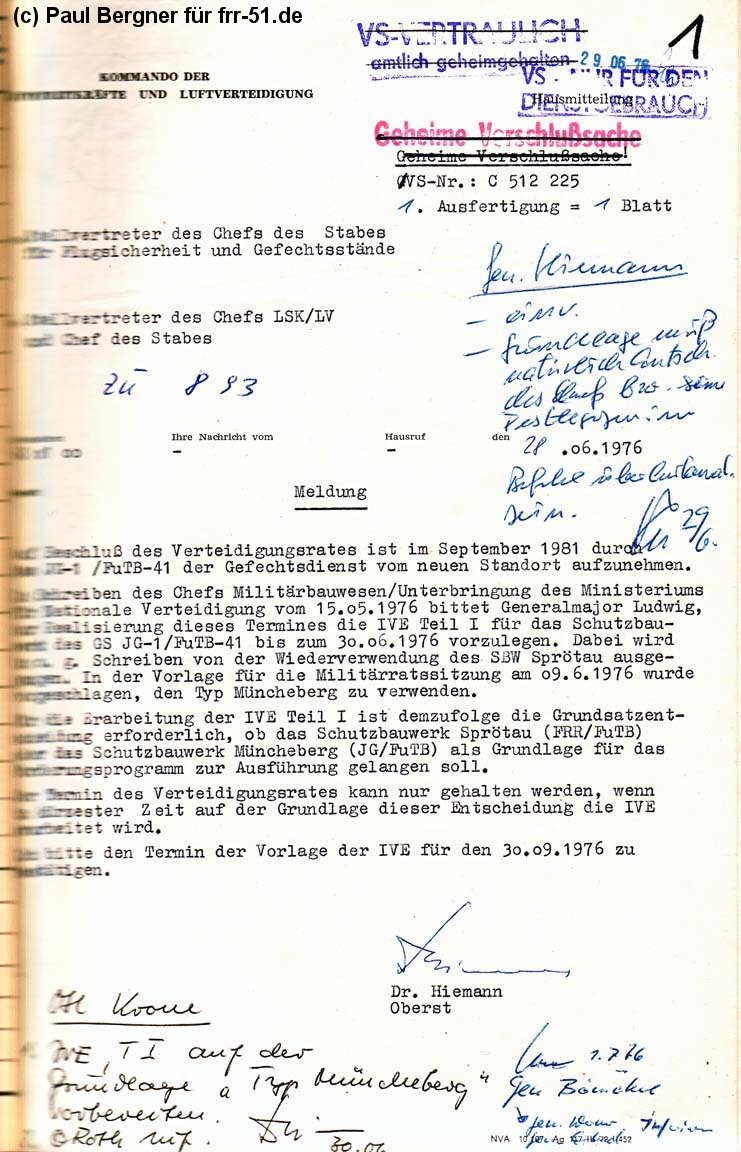 Durch diese Bauweise besitzt dieser Bunker einen Einmaligkeitswert unter den SBW in der ehemaligen DDR. Ursprünglich sollte dieser Typ ein Wiederverwendungsprojekt für Schutzbauwerke in der DDR werden, wurde allerdings dann nur einmal gebaut, weil sich herausstellte, das sich der, für dieses Bauform erforderliche materielle Aufwand, gegenüber einem rechteckigen Bauwerk vervielfachte, vor allem auch, da man berechnet hatte, das der oben genannte Vorbeileitungseffekt der Druckwelle erst optimal erzielt werde konnte, wenn die Höhe des Bauwerks größer als dessen Durchmesser ist [20].